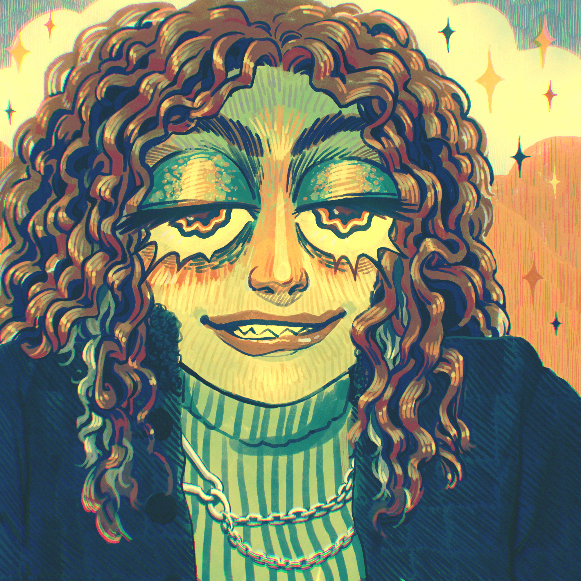 I draw inspiration for comics from external sources, like retro anime and manga, and the shapes and colours of daily life. Regarding projects, I’m working on an interactive comic which draws upon my fixation with constructed languages; I developed a vocal synthesiser, which makes my own lyrics seem unfamiliar— a useful thought exercise for character writing; I’m contributing art and music to small-scale video games; and lastly, I’m inspired by my new healthcare job… I’m imagining a story about a pharmacist who swallows every loose pill they find. My best projects are tonally impish, topically niche, and visually cute.